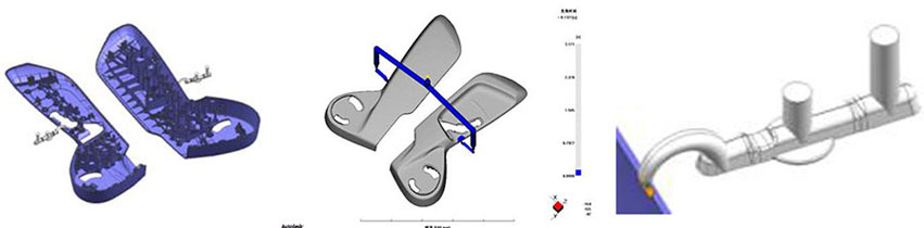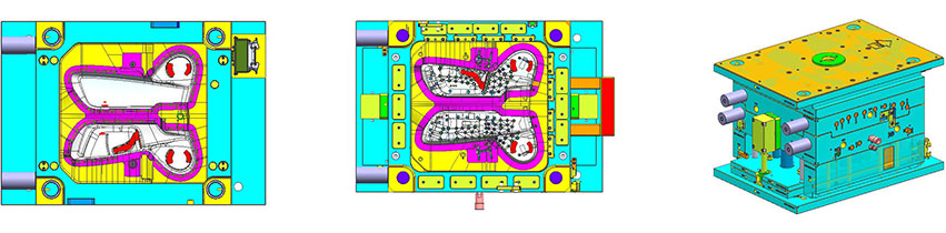 結合CAE分析,合理布置澆口位置;采用萬向滑塊,用香蕉澆口自動斷料把,減少了人工參與。通過配置機械手,自動化的設備提高了生產(chǎn)效率。
