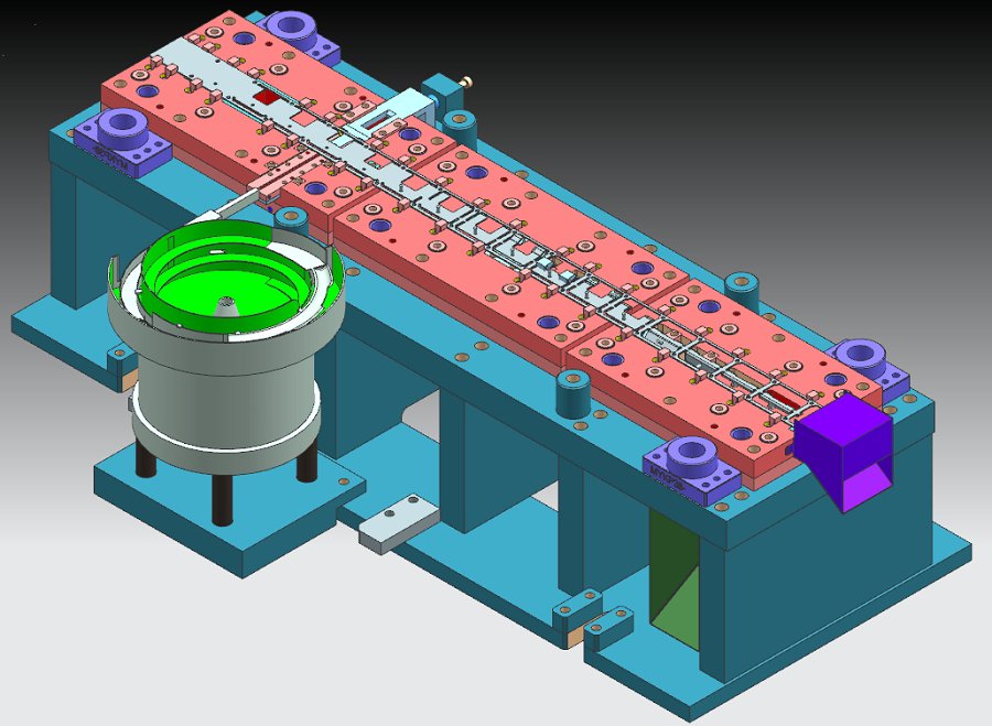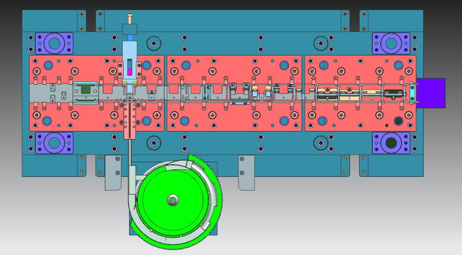 1.模具與送料機(jī)、壓鉚機(jī)配合工作,自動送料和旋鉚,無人工干預(yù),實(shí)現(xiàn)全自動連續(xù)穩(wěn)定生產(chǎn)。