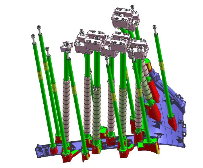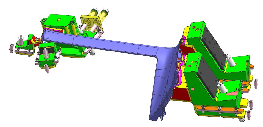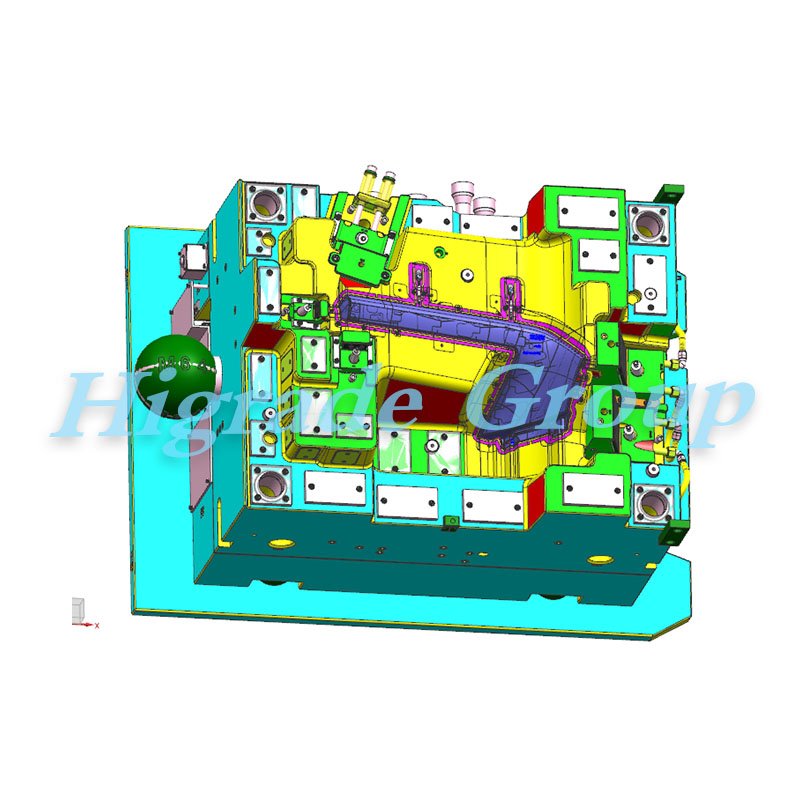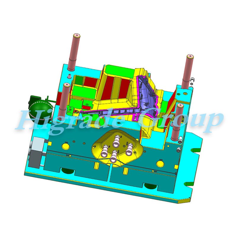 1、產(chǎn)品滑塊45°轉(zhuǎn)換斜抽,斜頂集中,斜頂座需要設(shè)計兩層避讓空間。
