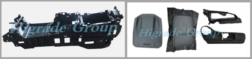 2.汽車中控下本體、汽車座椅背板(低壓注塑)、側(cè)翼