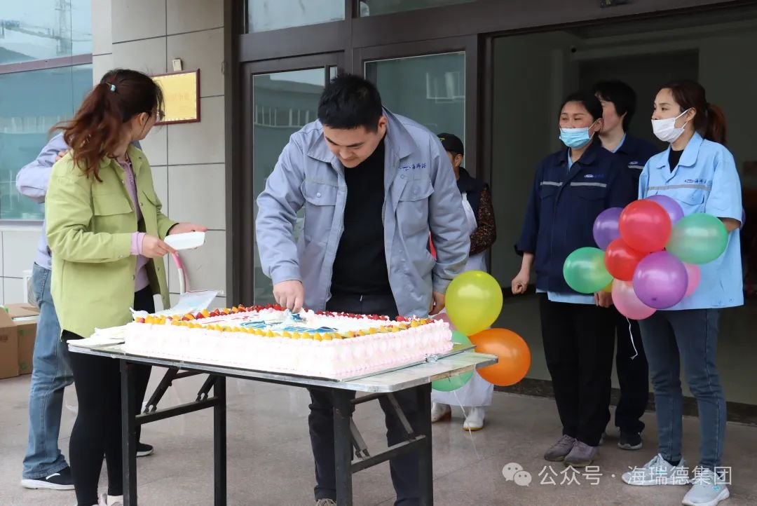 本次運動會當天恰逢海瑞德集團林總生日,喜事成雙,頒獎結束后蛋糕上場,甜蜜與開心共享,4月份生日的員工與林總共同慶祝,大家在歡聲笑語中一起分享這份快樂,在海瑞德大家庭里共同成長,我們手牽手肩并肩共同作戰(zhàn)!